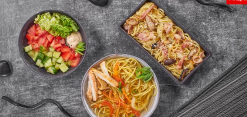 Состав: Салат овощи микс, суп куриный с овощами, вок бекон в сливках *Внешний вид блюда может отличаться от фото на сайте