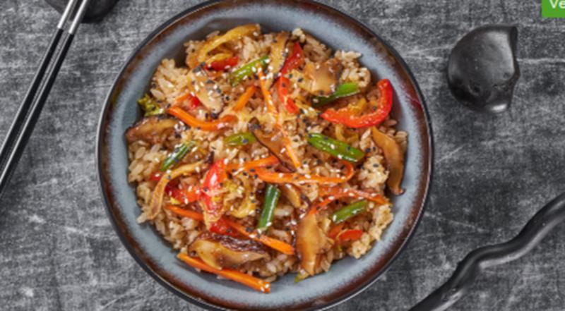 Состав: Рис гохан, грибы шиитаке, болгарский перец, морковь, пекинская капуста, стручковая фасоль, репчатый лук, соус вок, кунжут *Внешний вид блюда может отличаться от фото на сайте