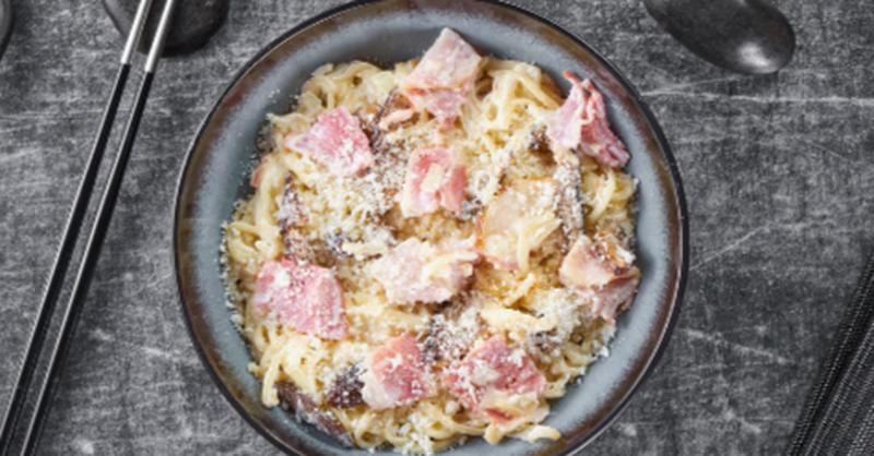 Состав: Лапша рамен, бекон, сыр пармезан, грибы шиитаке, сливки, репчатый лук *Внешний вид блюда может отличаться от фото на сайте