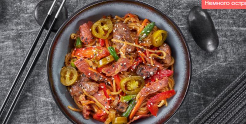 Состав: Лапша рамен, говядина, бекон, перец халапеньо, болгарский перец, морковь, пекинская капуста, стручковая фасоль, репчатый лук, барбекю соус *Внешний вид блюда может отличаться от фото на сайте