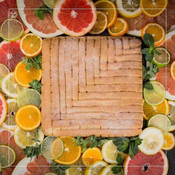 Состав: Тесто песочно-дрожжевое, сливочный сыр, сливки, лимоны, апельсины, сахар.