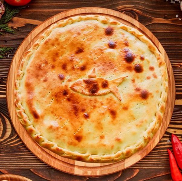 Состав: Тесто, соус сливочный, горбуша, лук, перец черный, масло сливочное.