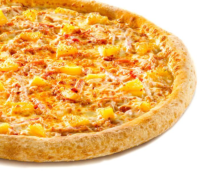 Состав: Тропическая классика с ароматной ветчиной, фирменным томатным соусом и моцареллой в сочетании с кусочками ананаса.