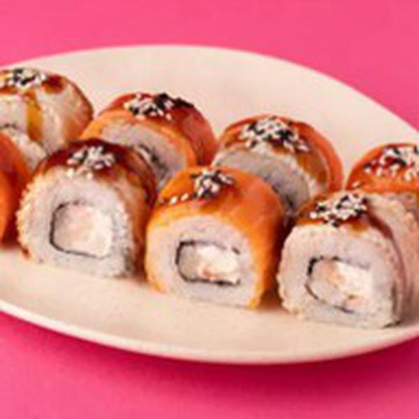 Состав: Креветка, гребешок, лосось, угорь, сливочный сыр, унаги соус, кунжут, рис (рис, вода, заправка для риса), нори *Не забудьте заказать имбирь, васаби и соевый соус. Они не входят в стоимость заказа.