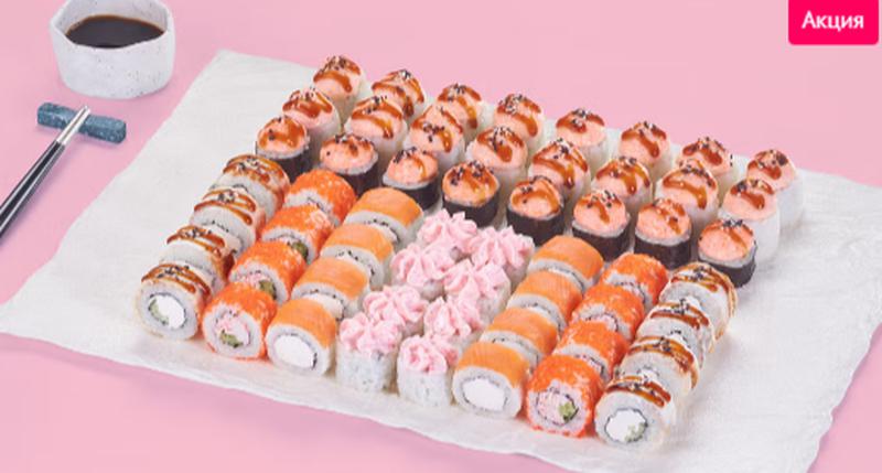 Состав: Филадельфия лайт (8 шт.), Лава краб (8 шт.), Калифорния супер лайт (8 шт.), Филадельфия с угрем (8 шт.), Аква (8 шт.), Нежный с курицей (8 шт.), Флай-скай (8 шт.) *Не забудьте заказать имбирь, васаби и соевый соус. Они не входят в стоимость заказа.
