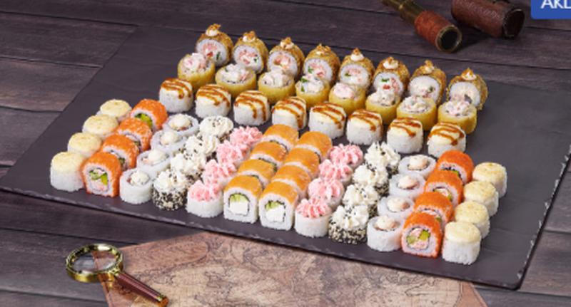 Состав: Ролл Филадельфия лайт (8 шт.), ролл Кракатау фреш (8 шт.), ролл Кентукки (8 шт.), ролл Калифорнийский краб (8 шт.), ролл Эрта але (8 шт.), ролл Эль пасо (8 шт.), ролл Египетская курица (8 шт.), ролл Итальянский ХОТ (8 шт.), ролл Курочка из Сакурасо (8 шт.) *Не забудьте заказать имбирь, васаби и соевый соус. Они не входят в стоимость заказа.