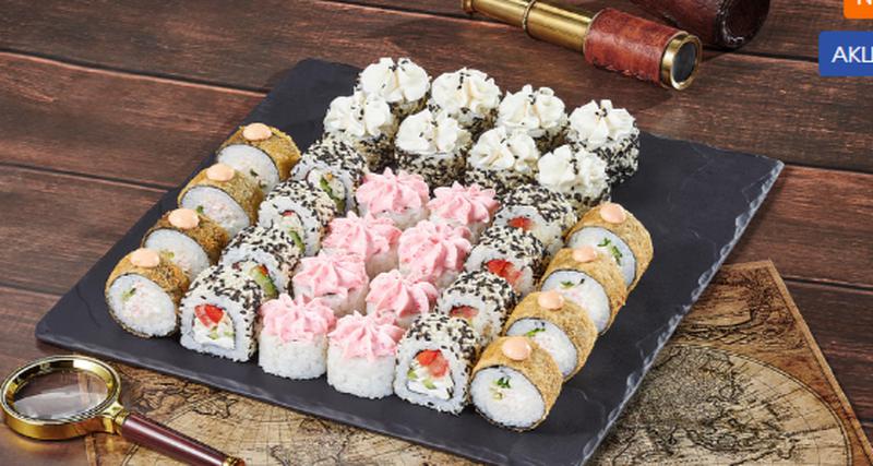 Состав: Ролл Кракатау фреш (8 шт), ролл Эрта Але (8 шт), ролл Калифорнийский фреш (8 шт), ролл Карибы (8 шт) *Не забудьте заказать имбирь, васаби и соевый соус. Они не входят в стоимость заказа.