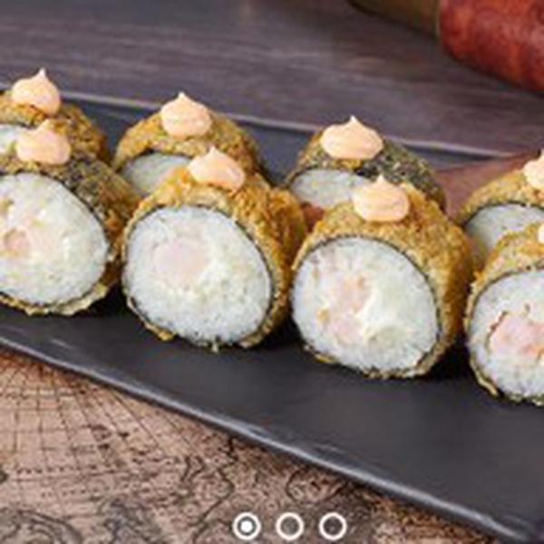 Состав: Креветка, сыр сливочный, соус спайси, кляр, сухари панко, рис, нори. Не забудьте заказать имбирь, васаби и соевый соус. Они не входят в стоимость заказа.