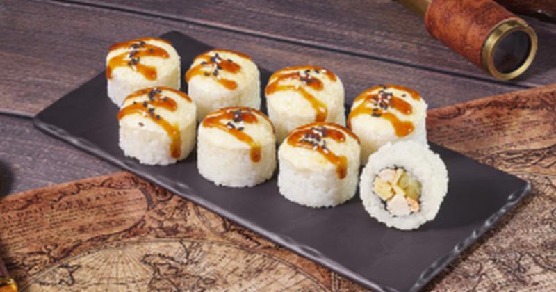 Состав: Курица, огурец, блин тамаго, соус японский майонез, замес монако, соус унаги, кунжут, нори, рис *Не забудьте заказать имбирь, васаби и соевый соус. Они не входят в стоимость заказа.