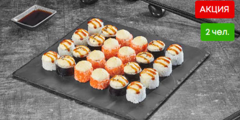 Состав: Филадельфия темпура (8 шт.), Нежный с лососем запеченный (8 шт.), Монако запеченный (8 шт.)