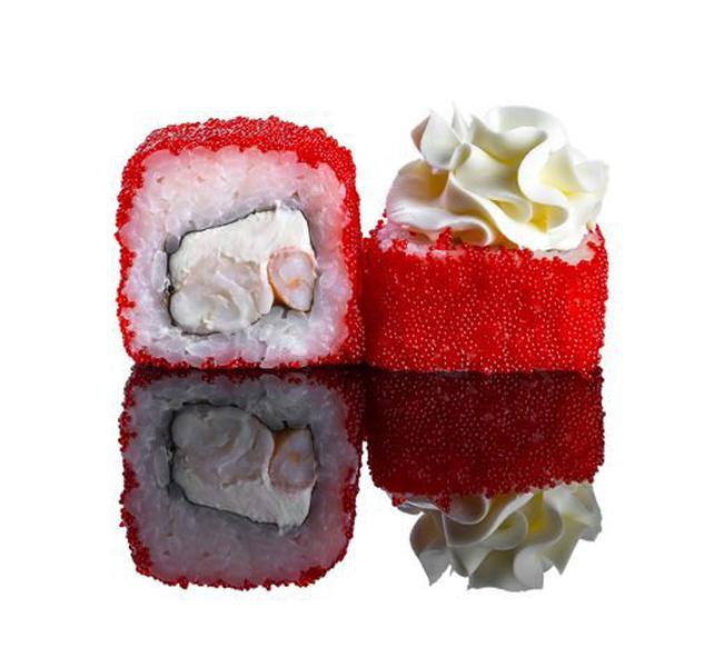 Состав: Тигровая креветка, сыр творожный, икра масаго.