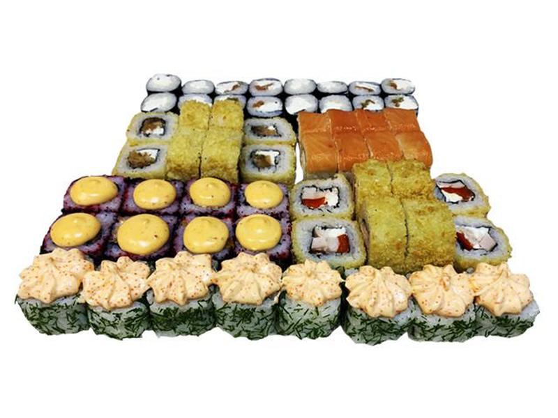 Состав: Филадельфия лайт, сакура, темпура чикент, хрустсалмон, микс, креметте, сяке кунсей чиз