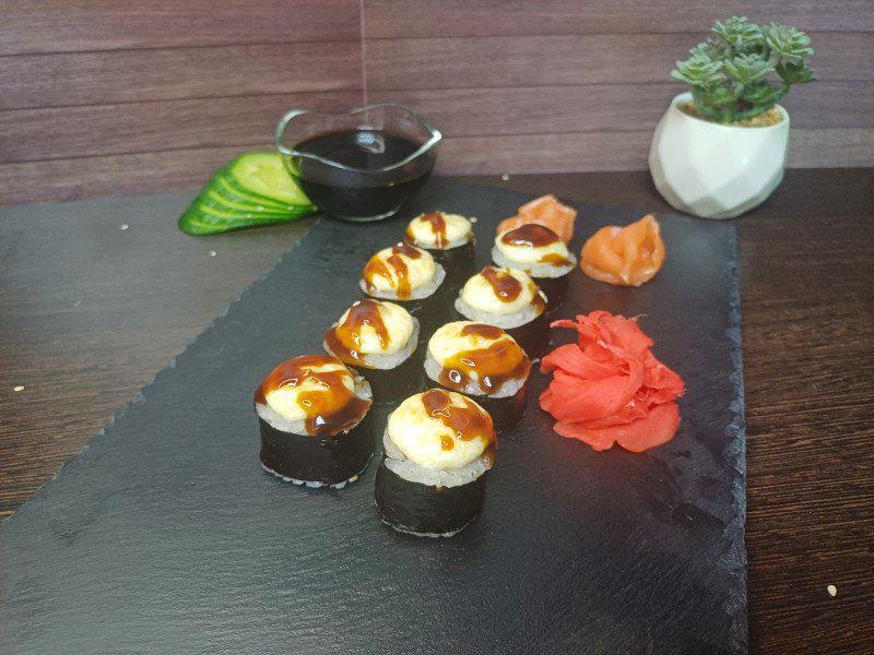 Состав: Маринованный лосось, сырный соус для запекания, унаги соус