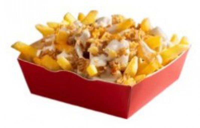 Состав: Картофель фри чиз – всеми любимый картофель фри с хрустящей корочкой в сочетании с нежным фирменным соусом и жареным луком.